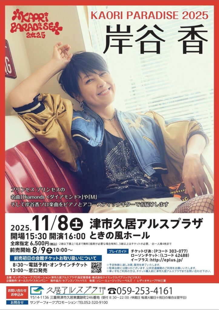 昨日は津市久居アルスプラザにて、「岸谷香 KAORI PARADISE 2025」の調律にお伺いしました。