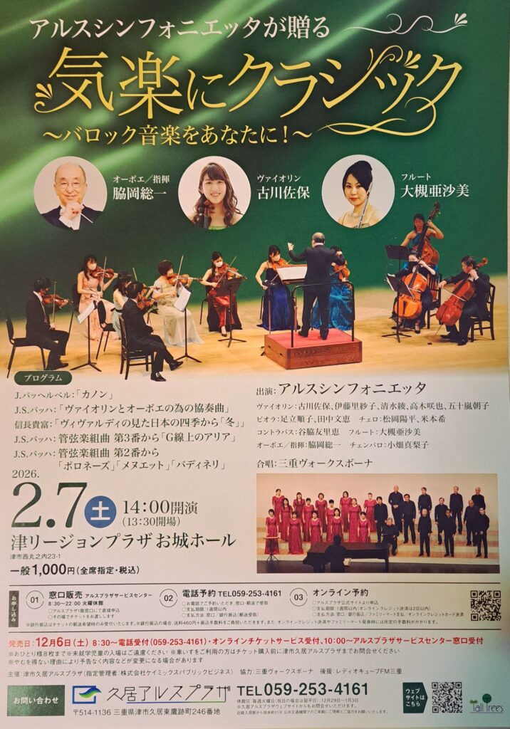 先日、津リージョンプラザお城ホールにて、「気軽にクラシック~バロック音楽をあなたに!~」の調律にお伺いさせて頂きました。