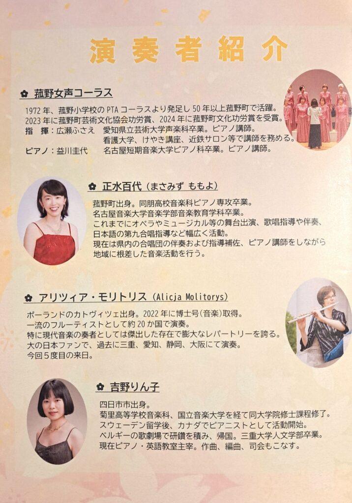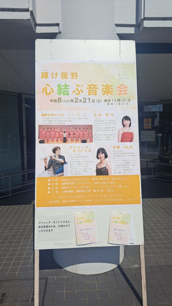 輝け菰野 心結ぶ音楽会 2026年2月22日 最終更新日時 : 2026年2月22日 hatade-piano 昨日は、菰野町町民センターホールにて「心結ぶ音楽会」というイベントの調律にお伺いさせて頂きました😊 チラシ! この日はフルート奏者のアリツィアさんが急遽出演できなくなり、女声コーラス、ピアノ&歌、ピアノソロという内容に変更されました。 リハーサル開始! リハーサル1 リハーサル2 入り口付近 直前にイベントのメインの内容が変更になり大慌て!でしたが、百戦錬磨の先生方のおかげで無事に乗り越えておられました✨️ 私はリハーサルまでの立会いたが、演奏も素晴らしく良い一日となりました🎶 調律! \ 最新情報をチェック / FacebookXBlueskyHatenaCopy