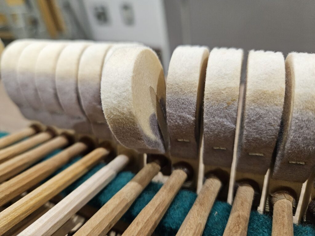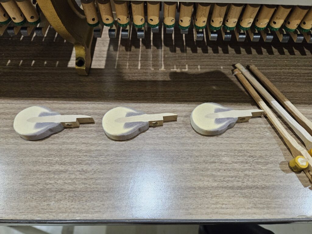 こちらは半年ほど前に初めて調律したピアノでしたが、なんとハンマーが折れており、修理しながら調律しながらと大変苦戦したピアノでした💦